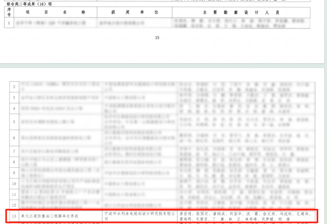 近日,2025年度浙江省勘察設(shè)計(jì)行業(yè)優(yōu)秀勘察設(shè)計(jì)成果評(píng)選結(jié)果正式公布。由我院牽頭設(shè)計(jì)的“奉化江堤防整治工程鄞奉交界段”項(xiàng)目,繼榮獲寧波市優(yōu)秀勘察設(shè)計(jì)獎(jiǎng)之后,再獲浙江省勘察設(shè)計(jì)行業(yè)優(yōu)秀勘察設(shè)計(jì)成果綜合類(lèi)二等獎(jiǎng)。
