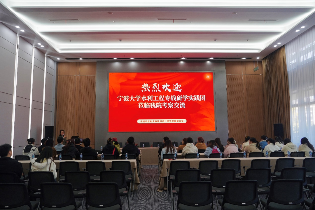 隨后,研學(xué)團(tuán)一行前往我院報(bào)告廳開展座談交流。首先,王院長向研學(xué)團(tuán)一行到訪我院表示熱烈歡迎,她表示,作為扎根于海曙、服務(wù)寧波水利發(fā)展的企業(yè),將深入推動并加強(qiáng)產(chǎn)學(xué)研用工作放在突出位置,寧波大學(xué)作為寧波本地的一所雙一流高校,希望通過本次的交流,同學(xué)們能夠進(jìn)一步加深對行業(yè)的認(rèn)識,并對未來的職業(yè)發(fā)展有所啟發(fā)。