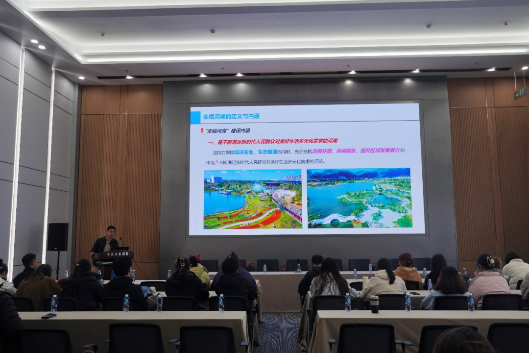 我院規(guī)劃院綜合與市場發(fā)展部主任胡劍以“新時(shí)期幸福河湖建設(shè)思路及典型案例”為主題,結(jié)合生動案例,深入解讀"幸福河湖"的豐富內(nèi)涵:安全、生態(tài)、宜居、智慧、文化,是按照“全域推進(jìn)、重點(diǎn)打造”的總體思路,“點(diǎn)、線、面”開展多元化精品示范建設(shè),構(gòu)建全域幸福格局,展現(xiàn)人水和諧的寧波實(shí)踐。