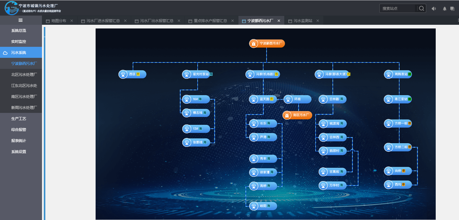 對轄區(qū)范圍內(nèi)的城鎮(zhèn)污水處理廠進(jìn)行管理,結(jié)合污水管理需求,開發(fā)污水廠站點(diǎn)管理、污水廠進(jìn)出水報(bào)警、各級污水廠實(shí)時(shí)數(shù)據(jù)監(jiān)控、污水系統(tǒng)統(tǒng)計(jì)、生產(chǎn)工藝展示、污水廠巡檢等功能,實(shí)現(xiàn)城鎮(zhèn)污水系統(tǒng)的高效在線化管理。