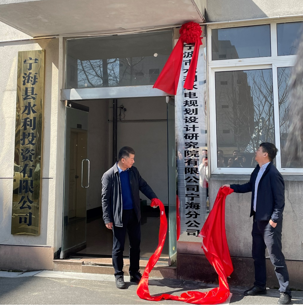 2022年2月25日上午,我院在寧??h水利局隆重舉行寧海分公司揭牌儀式。寧??h水利局黨委書記、局長王永寶,我院董事長、院長嚴文武等領導參加活動并為寧海分公司揭牌。