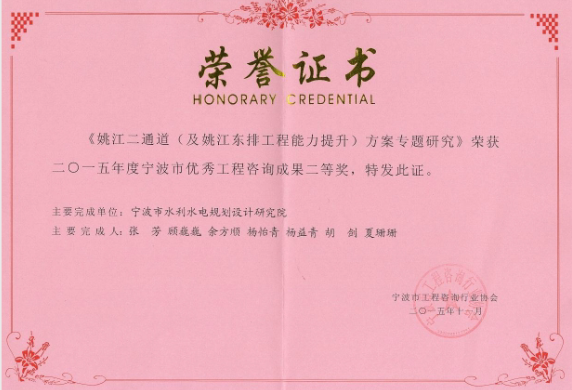 寧波市優(yōu)秀工程咨詢成果獎(jiǎng)