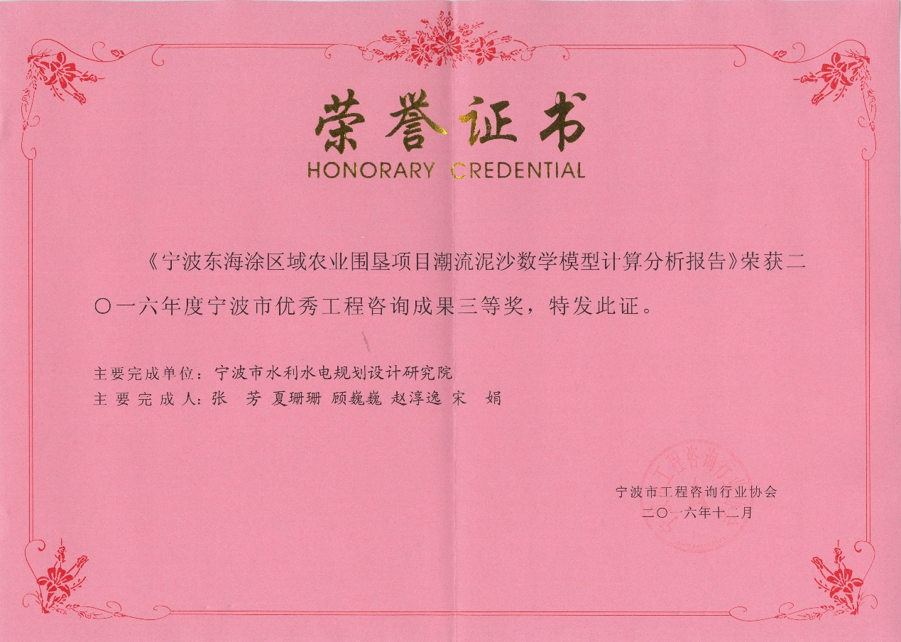 寧波市優(yōu)秀工程咨詢成果三等獎(jiǎng)