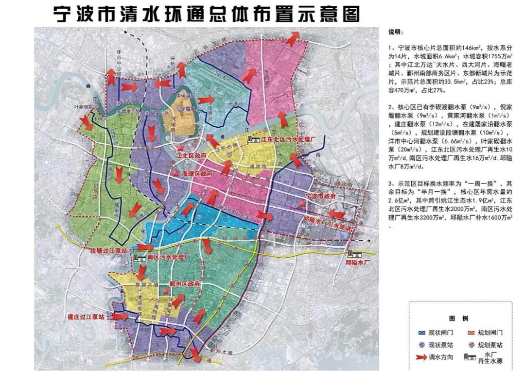 作為浙江省2021年重大水利項(xiàng)目計(jì)劃之一,寧波市區(qū)清水環(huán)通一期工程以三江核心河網(wǎng)為對象,涵蓋寧波市核心城區(qū)9片區(qū)域,總投資達(dá)20.33億元。自2019年啟動(dòng)項(xiàng)目前期,我院圍繞增總量、優(yōu)效率、提質(zhì)量,遵循流域統(tǒng)籌、重點(diǎn)突破、水岸同治、工程與非工程措施并舉、保護(hù)與修復(fù)同抓的系統(tǒng)治理思路,經(jīng)過實(shí)地調(diào)研踏勘,組織座談研討,反復(fù)研究論證,歷時(shí)一年之久,充分利用姚江、郯江等常規(guī)水源及再生水等非常規(guī)水源進(jìn)行河網(wǎng)引配水,通過屠家沿引水凈化工程、段塘泵引水凈化工程、平原內(nèi)部節(jié)制等工程,構(gòu)建大、中、小、微四級引調(diào)水體系,并創(chuàng)新利用管道自再生水廠引水,經(jīng)河道生態(tài)涵養(yǎng)后向周邊河網(wǎng)進(jìn)行補(bǔ)水,優(yōu)化河網(wǎng)水資源利用,提升水生態(tài)環(huán)境質(zhì)量。